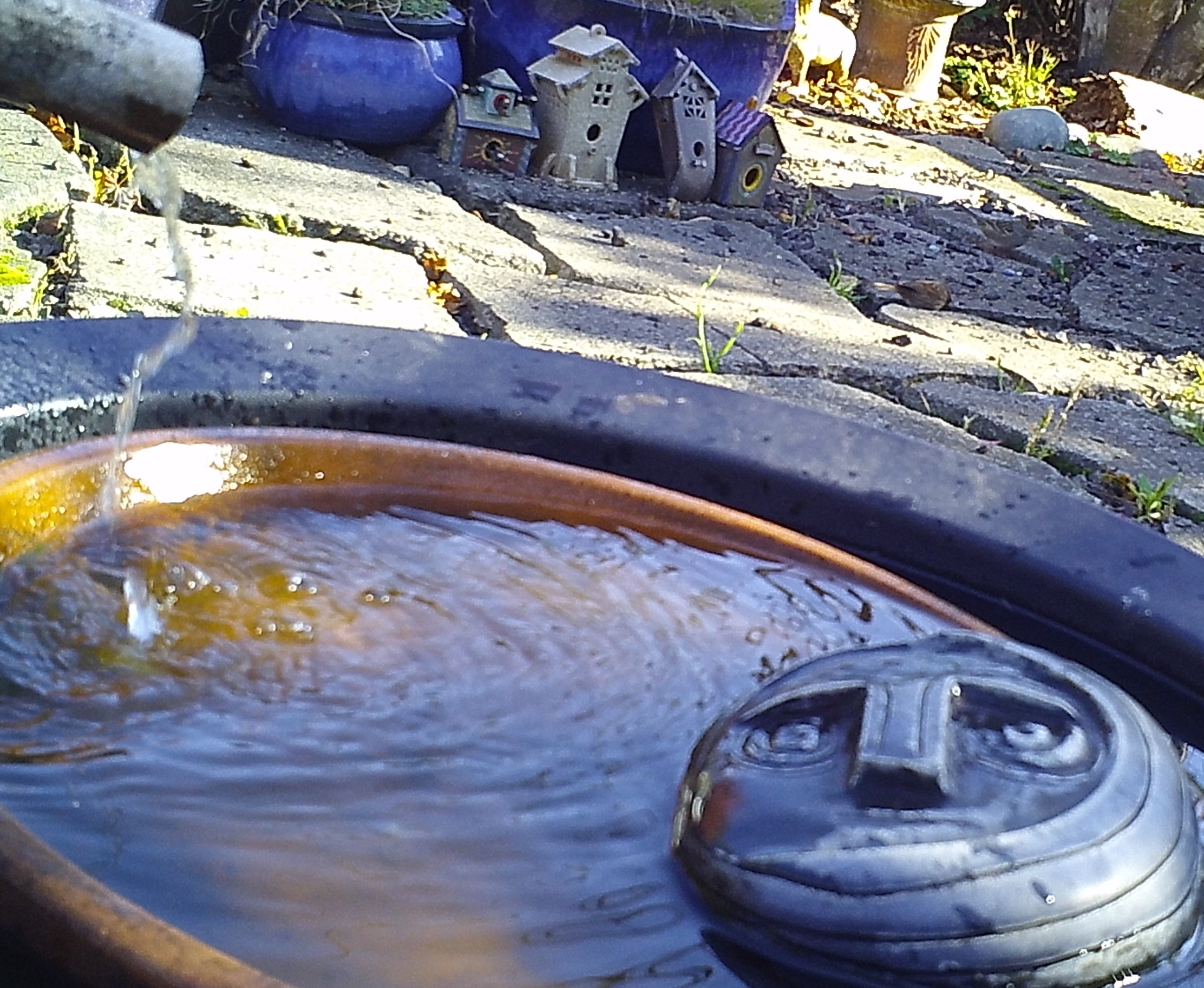 Gusty Fall winds swept the Foggy Bottoms Resort and Spa causing most guests to hunker down. During this solitude the Face of Everyman entertained himself by using his mental powers of control. Seen above the venerable sage is writing his name in the dancing waters.