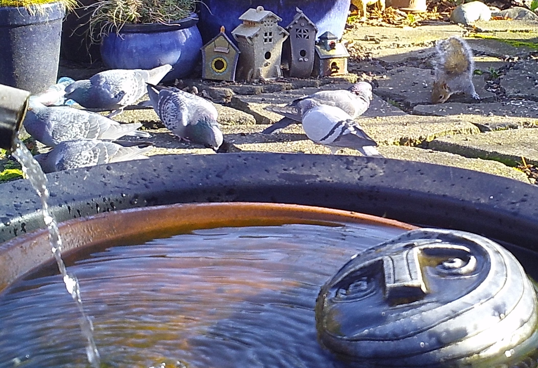 For a brief moment there was the pretense of sharing at the Foggy Bottoms Resort and Spa. The greedy pigeons and the voracious squirrel gave the other room to forage. In that moment the Face of Everyman gave himself credit for creating peace in our time.