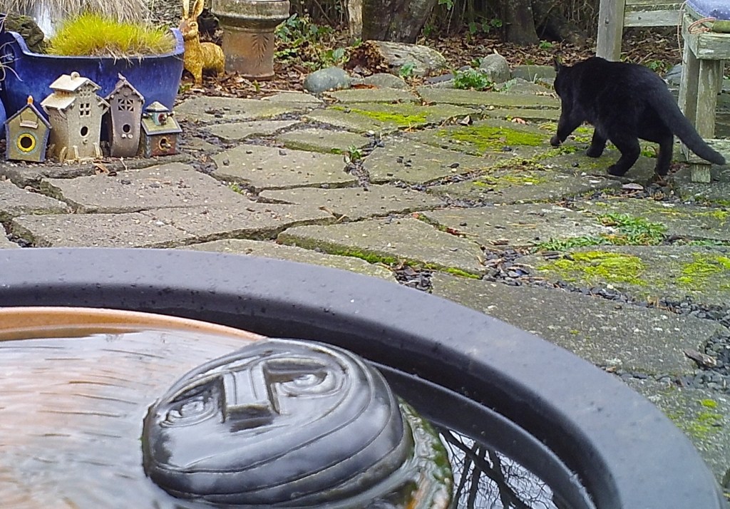 Once again Panther had flashed her Press Pass to get by security guards and enter the Foggy Bottoms Resort and Spa. Seen above, Panther is too embarrassed to be noticed by the Face of Everyman. Neither could remember the untold number of times she had promised to not try and catch a songbird.