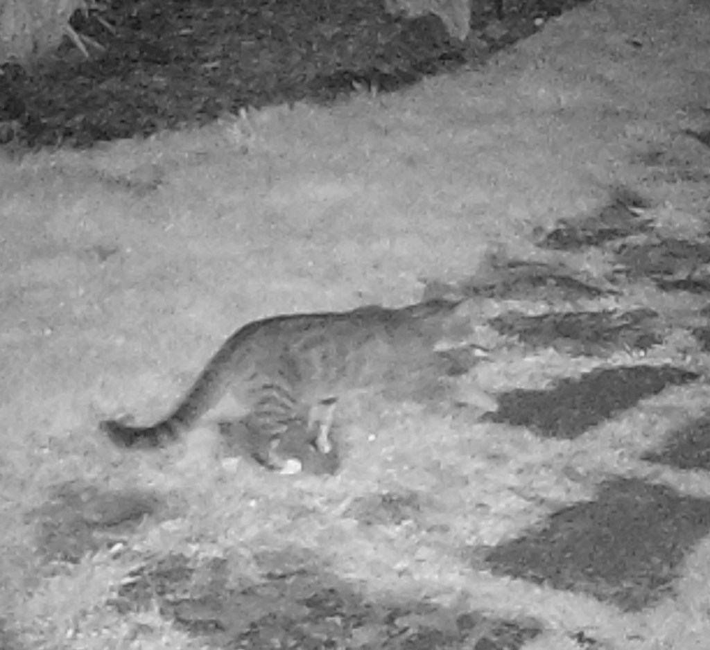 This un-named frequent visitor to the Foggy Bottoms Resort and Spa strides with impunity towards the feeding grounds of songbirds. the Face of Everyman is proud to report that there have been no fatalities so far this season. Can this enviable record stand?
