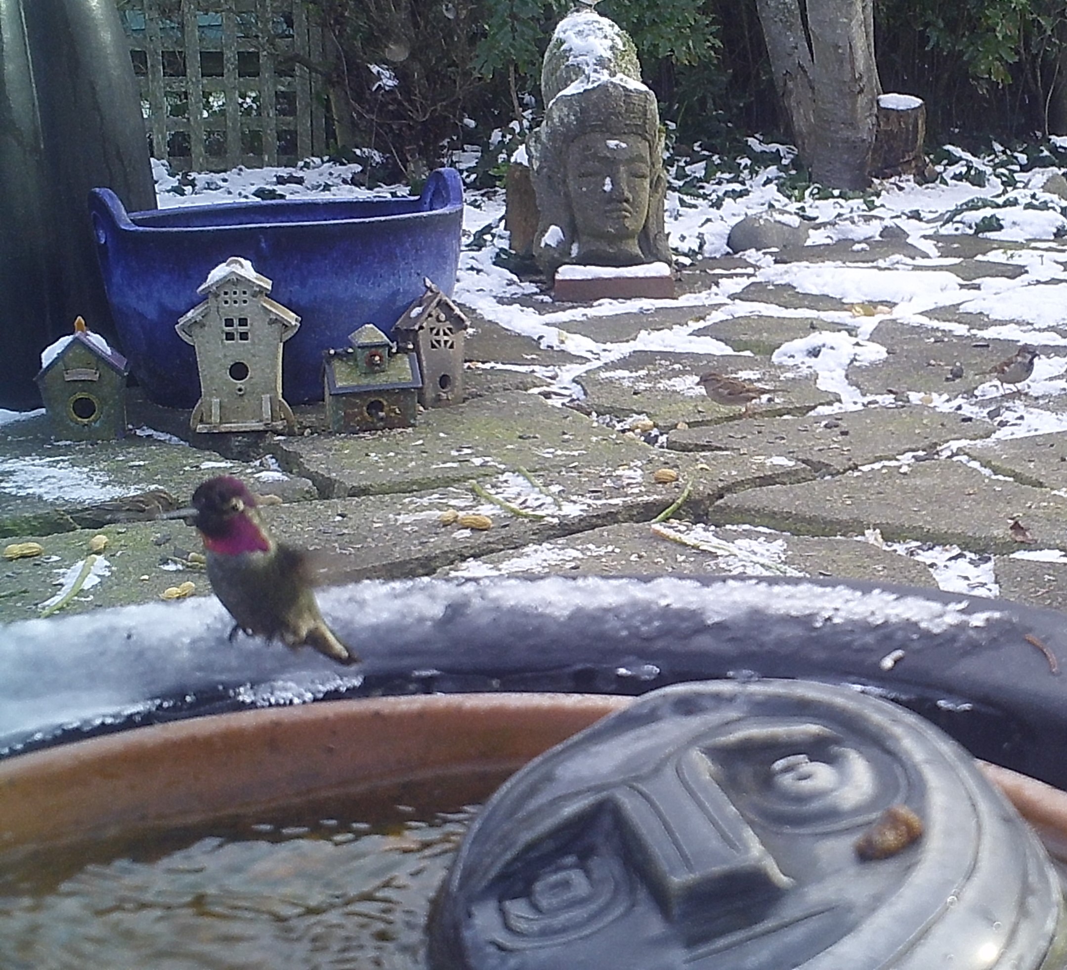 Spa? Posted on January 15, 2024 by torkel2020 This Hummer mistakenly took the warm waters of the Foggy Bottoms Resort and Spa for a feeder. One swallow corrected that notion. He returned to a near-frozen feeder and forced himself to drink. the Face of Everyman applauded his actions. Share this:Share Click to share on X (Opens in new window) X Click to share on Facebook (Opens in new window) Facebook Like Loading... Related