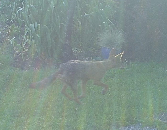 Grainy surveillance imagery revealed that once again The Trixster had penetrated the outer ring of security devices. On his way to his den, this Coyote is looking for breakfast at the world renown Foggy Bottoms Resort and Spa eatery. There are no eye witnesses accounts of this breach; even the Face of Everyman slept thru the entire event.