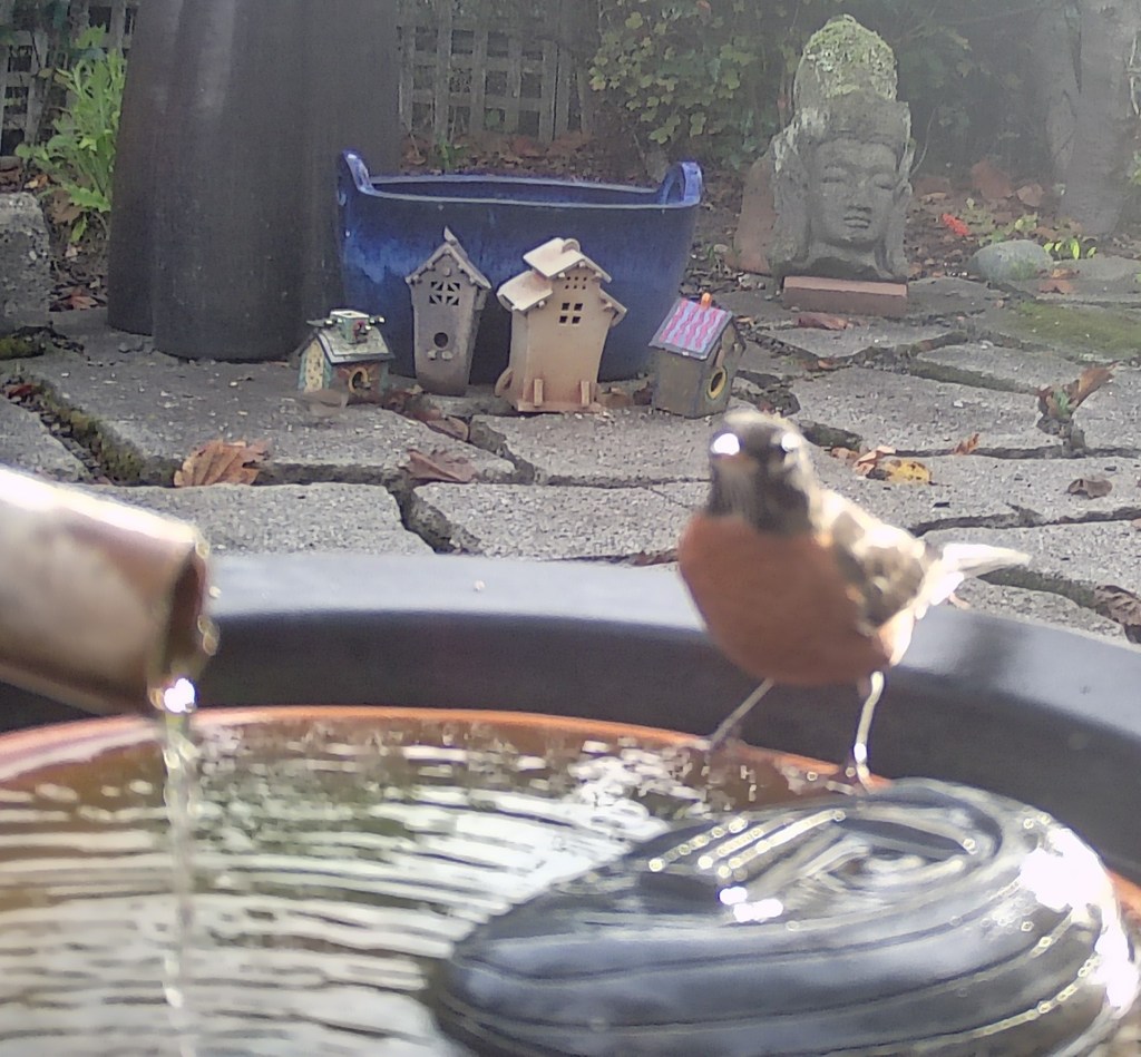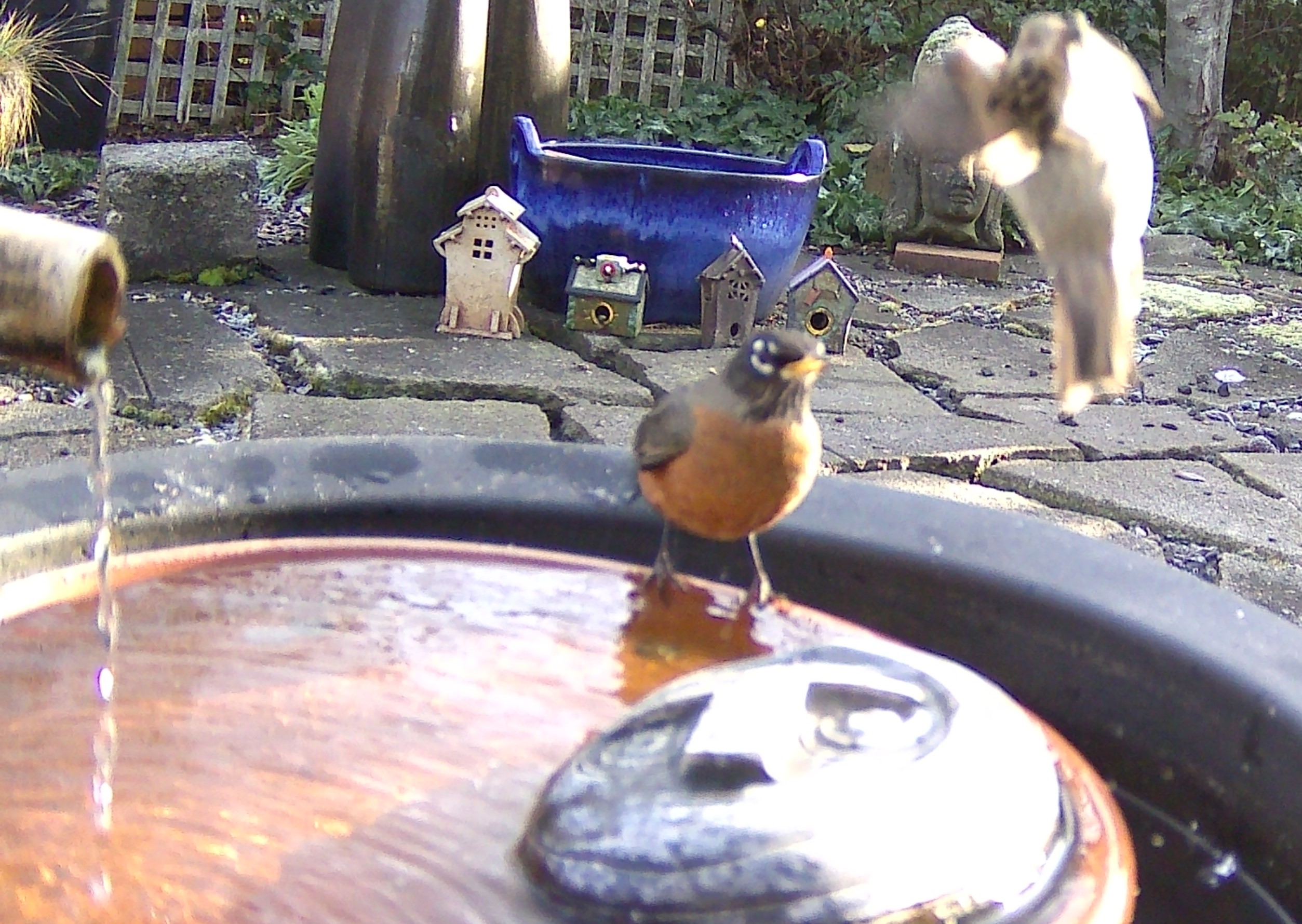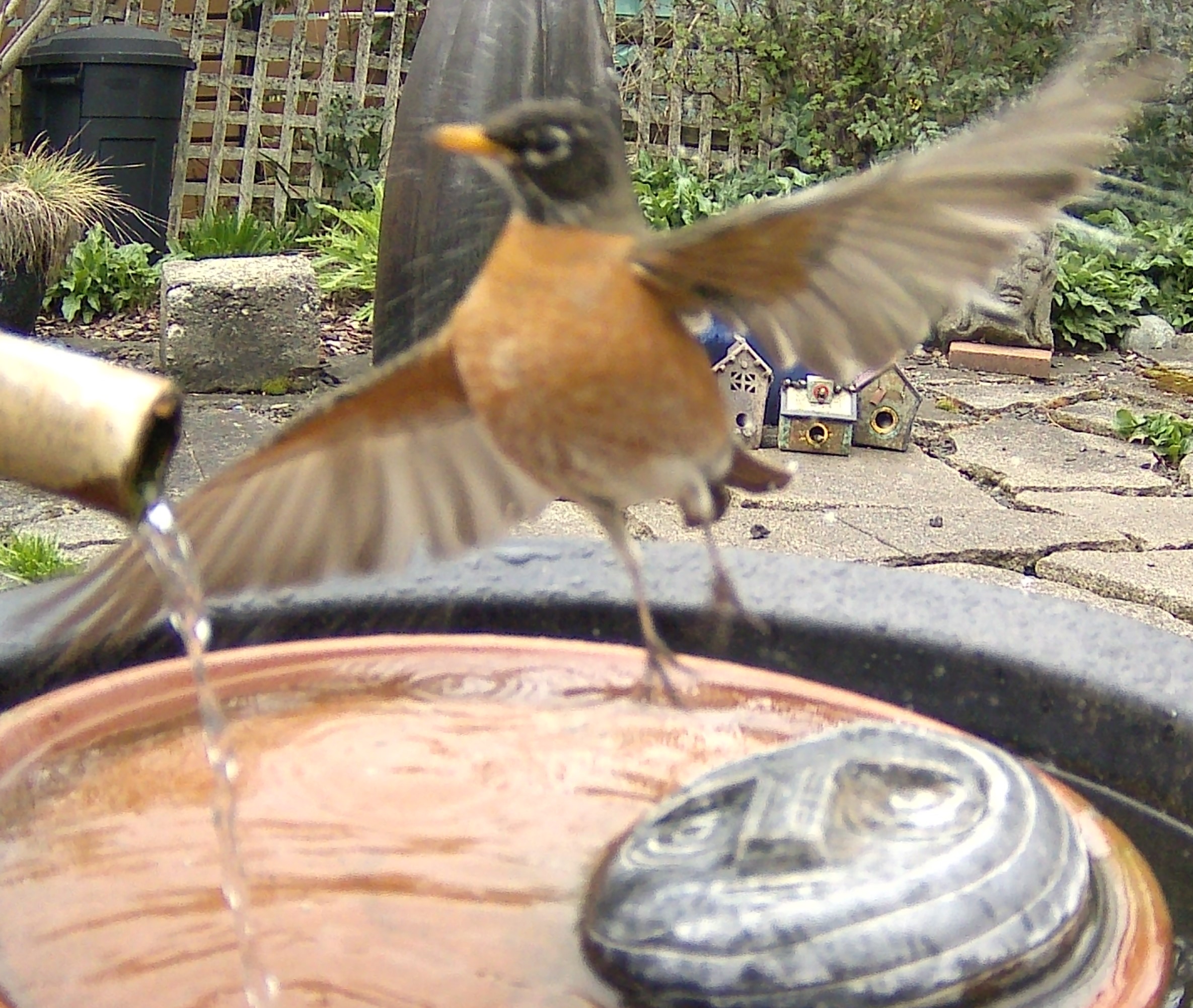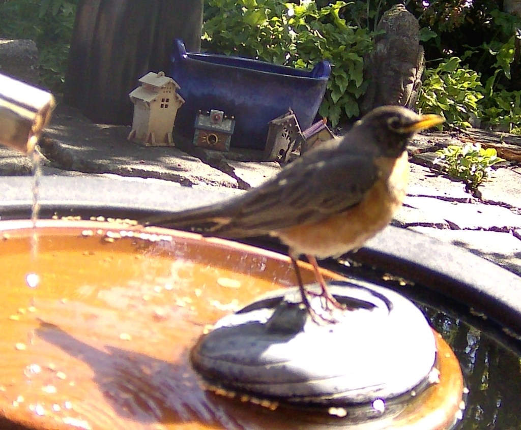 Sure enough, that was a Robin. The first in many weeks to enjoy the Foggy Bottoms Resort and Spa. the Face of Everyman wondered how soon earth worms would appear in his pristine waters.