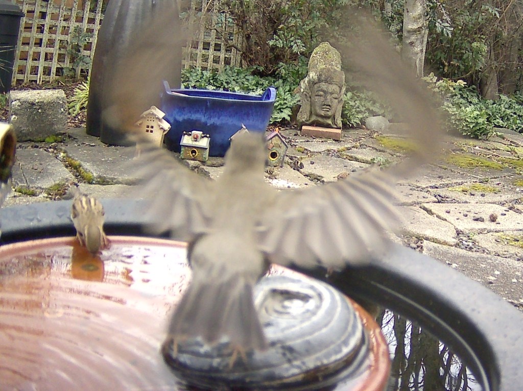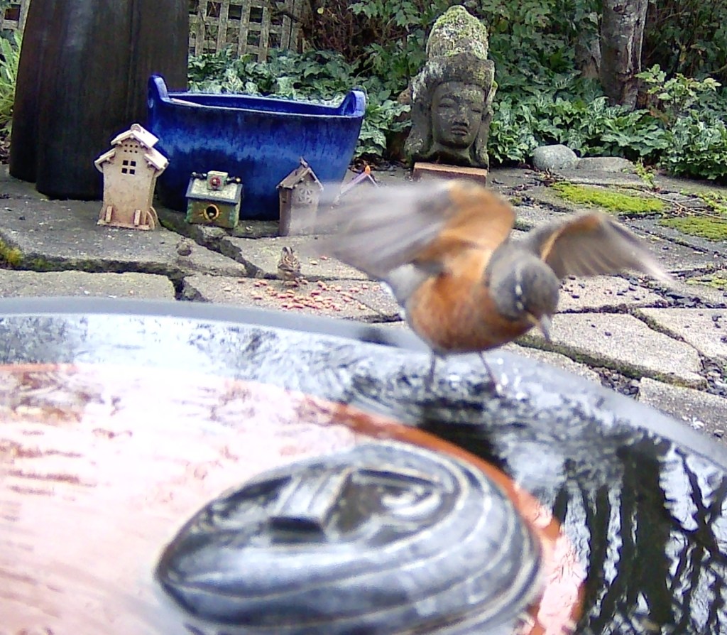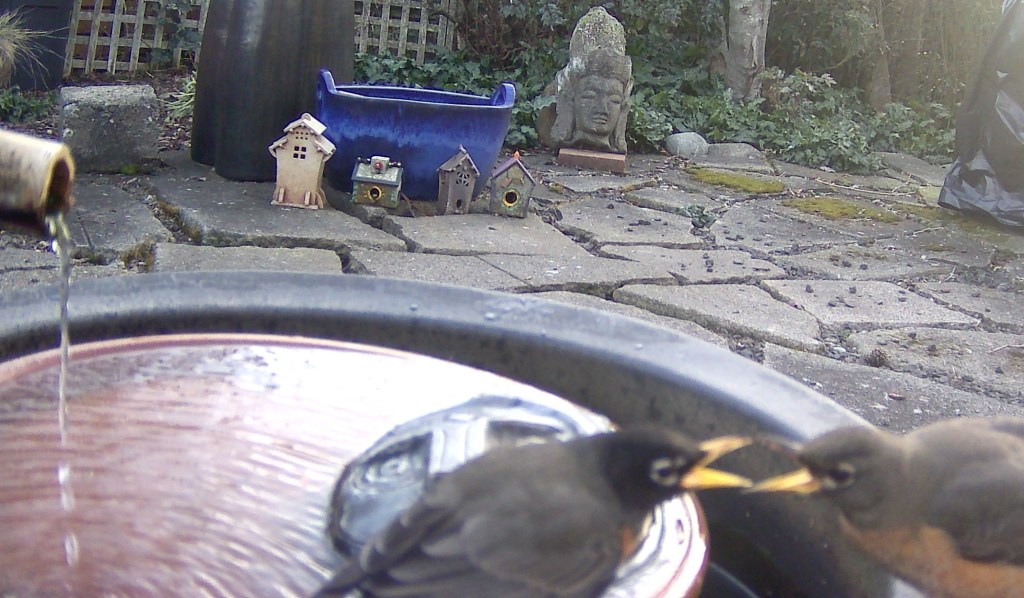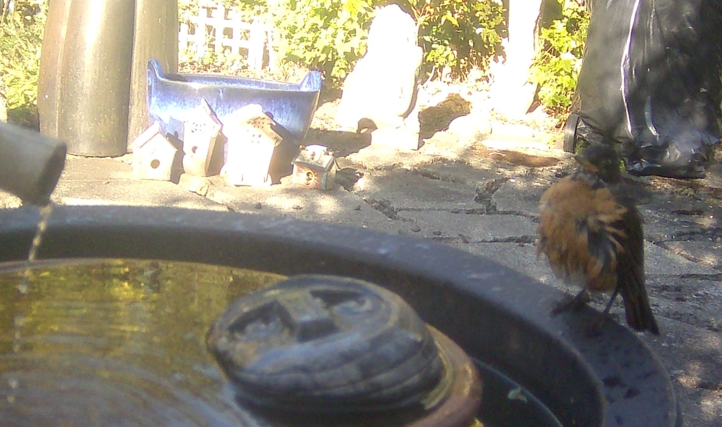 Sure enough, that was a Robin. The first in many weeks to enjoy the Foggy Bottoms Resort and Spa. the Face of Everyman wondered how soon earth worms would appear in his pristine waters.