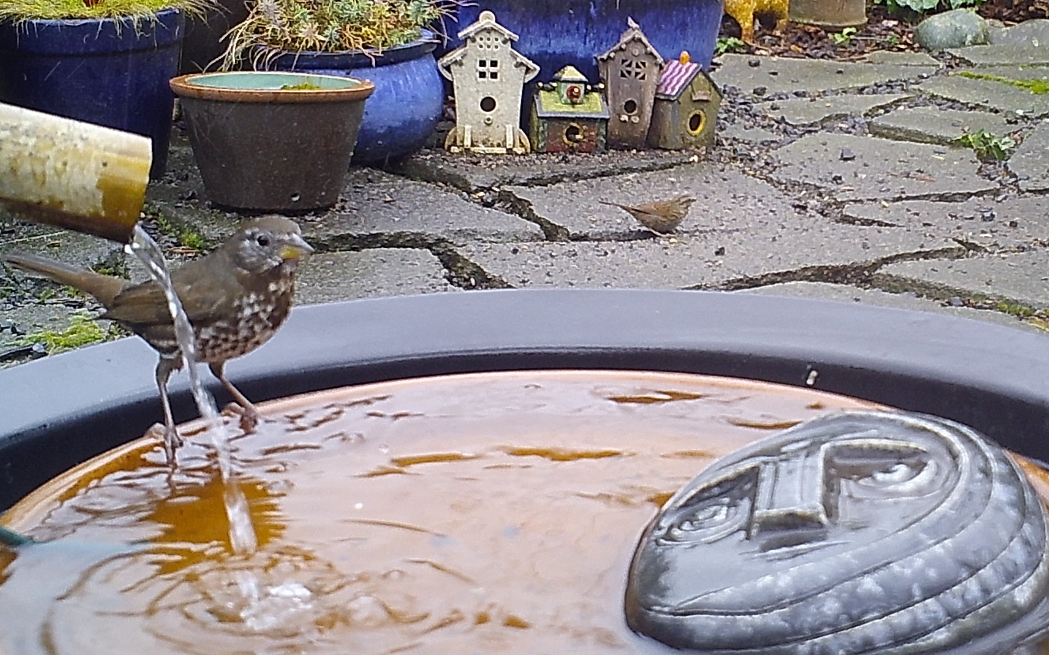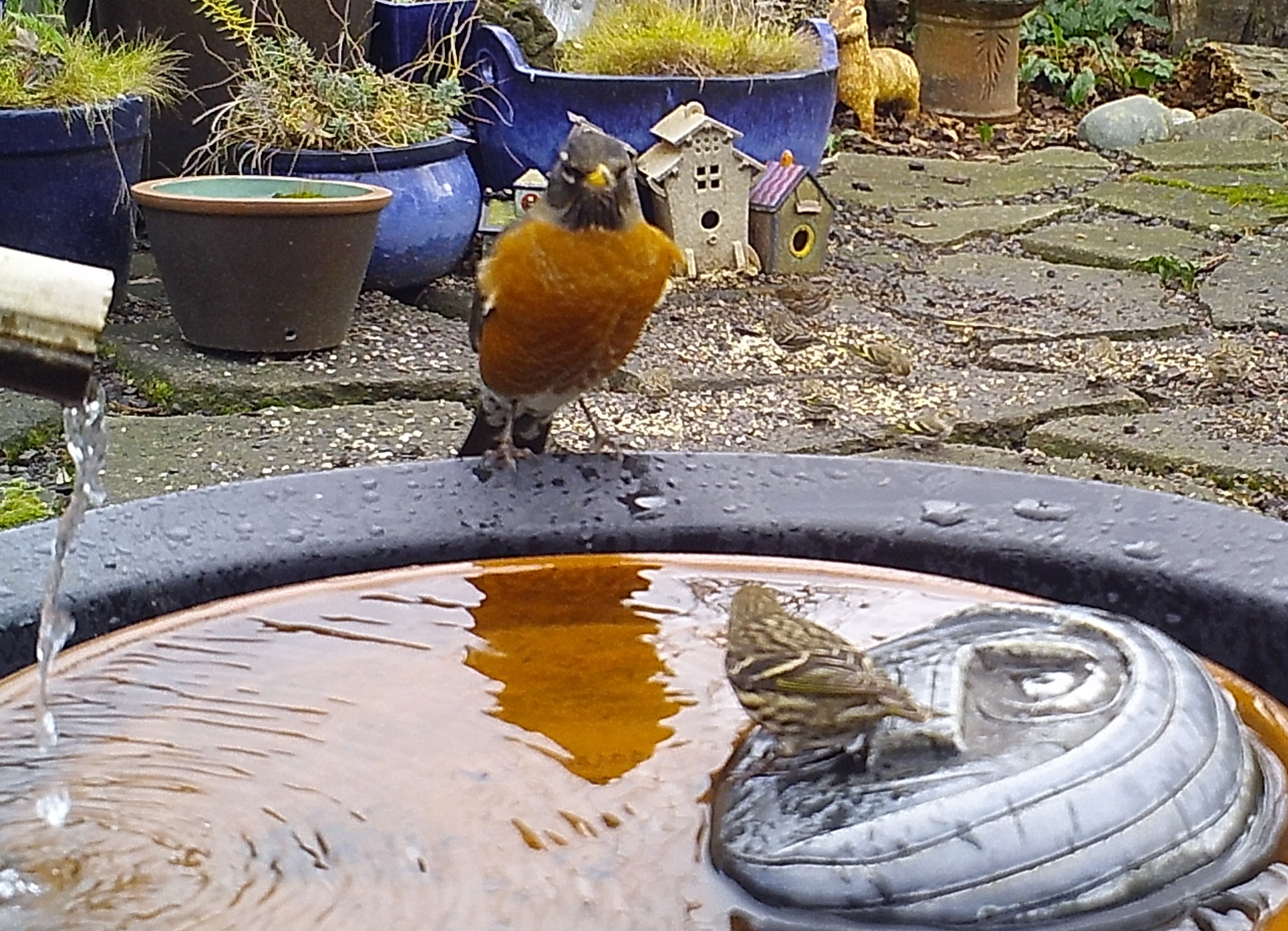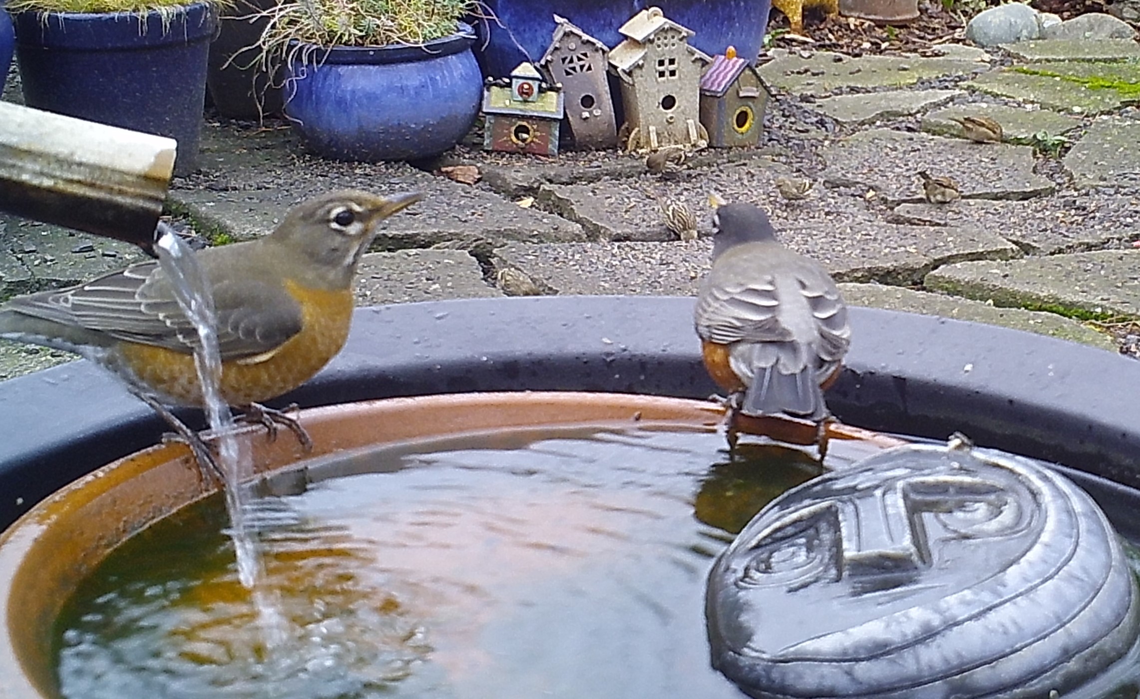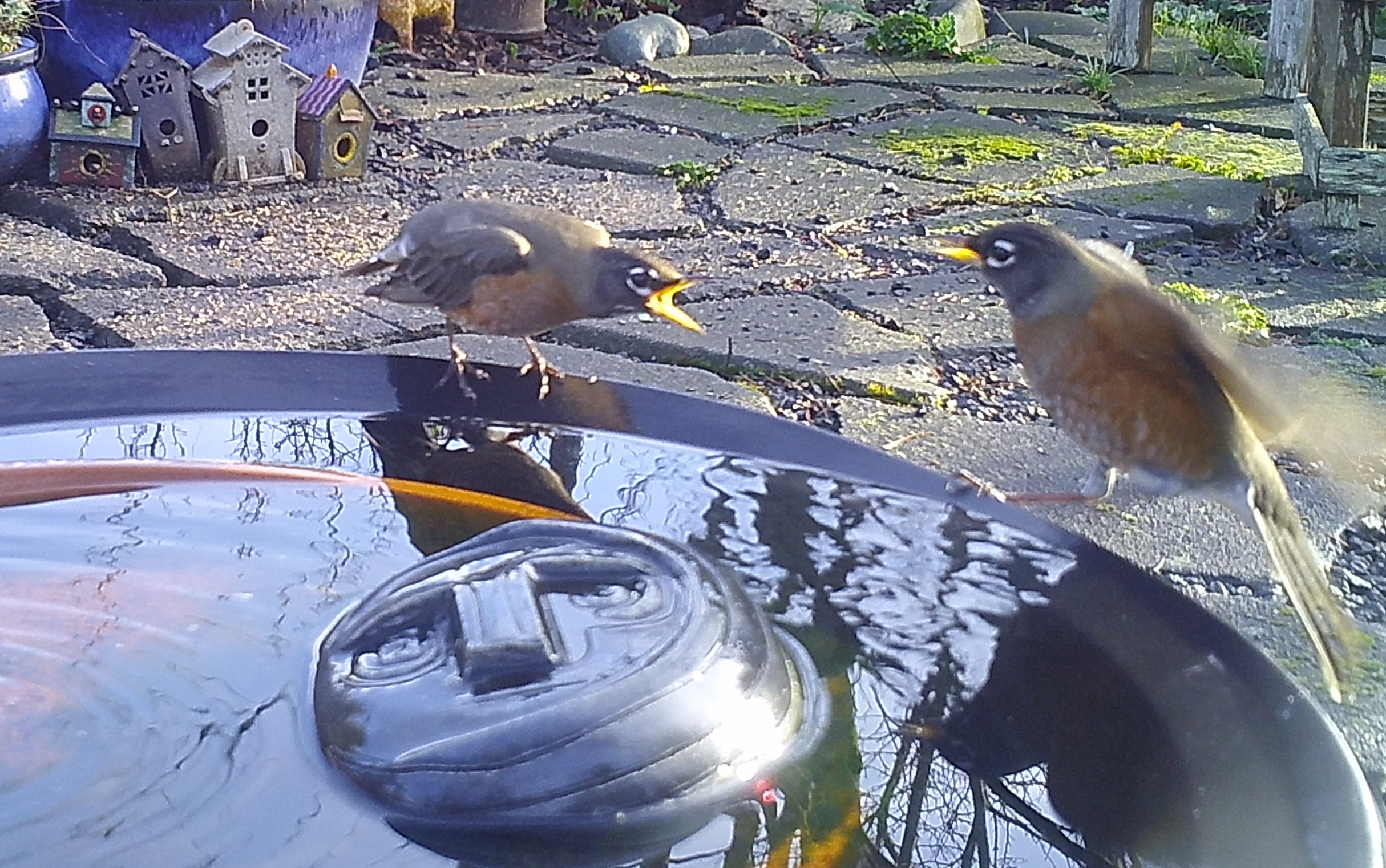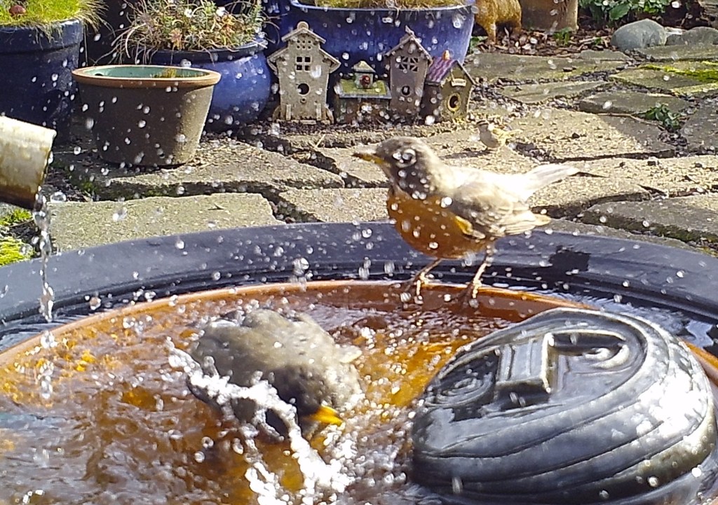 the Face of Everyman often disparaged the ebullience of youth. Seen above, these Robins are finding true joy in bathing in the world renown waters of the Foggy Bottoms Resort and Spa. The venerable sage wouldn’t mind so much if they didn’t splash water into his eyes.