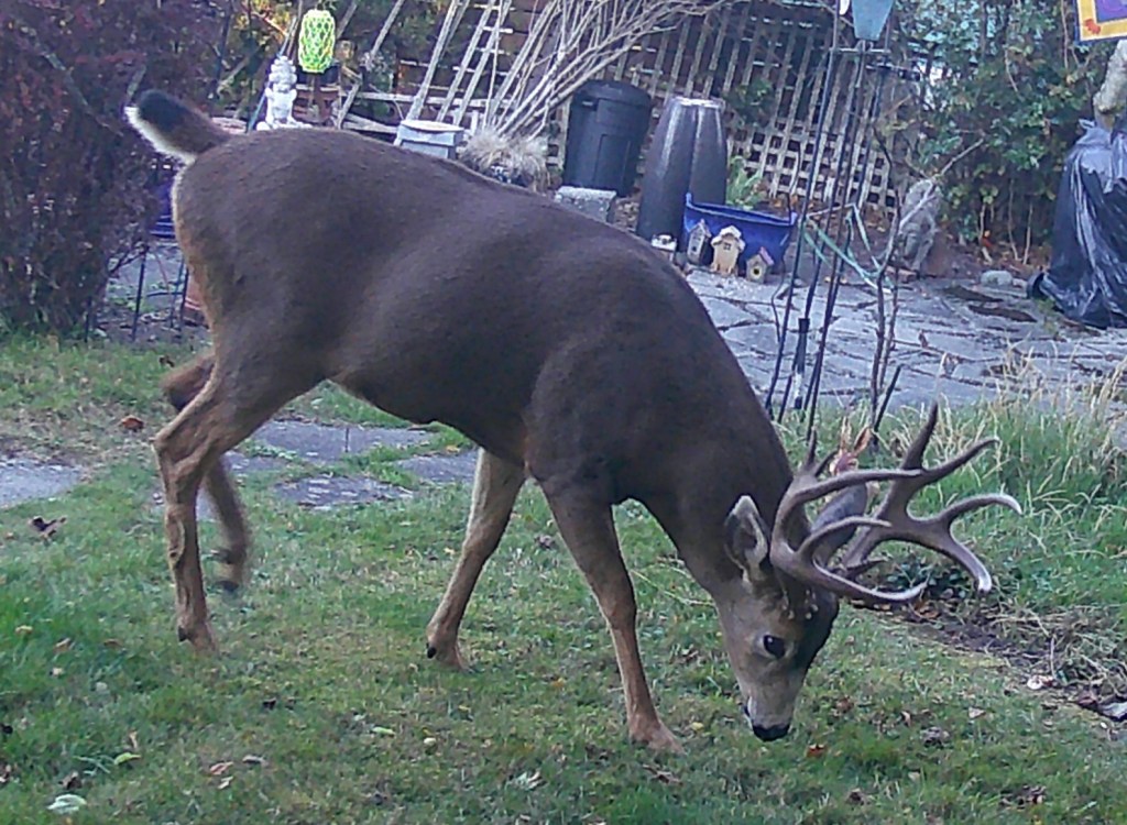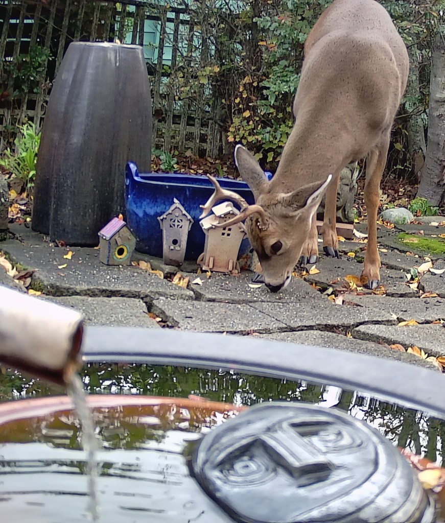 Bambi’s Aunt found no shame in gobbling up bird seed meant for the hungry songbirds of the Foggy Bottoms Resort and Spa. the Face of Everyman cursed his poor timing for feeding.