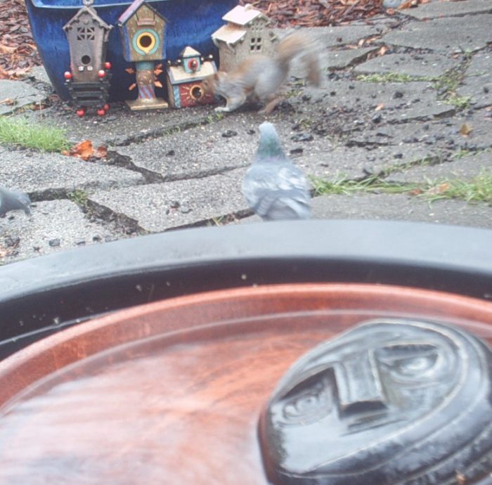 As the hostile pigeons closed in on Cheeky he recalled a defensive move he had learned here at the Foggy Bottoms Resort and Spa Dojo. The renown Sensei, the Face of Everyman, had instructed his pupils: “if all else fails, do the unexpected.” Cheeky took the Pepe le Pew stance and held the mob at bay long enough to stuff his cheeks.