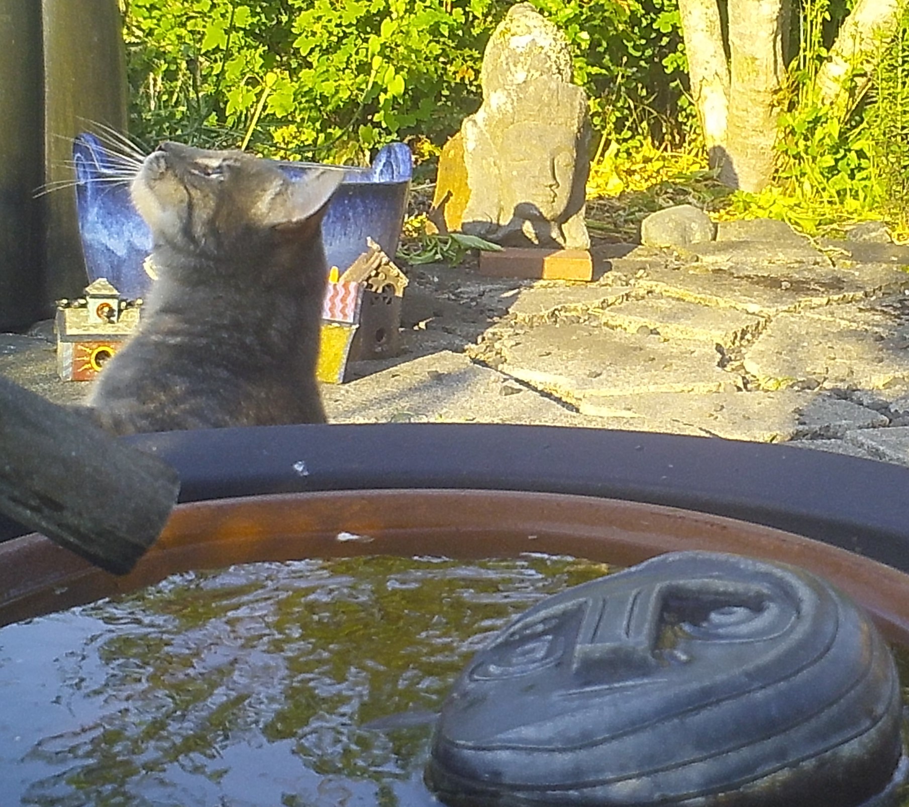 This neighborhood Tabby thought high tide at the Foggy Bottoms Resort and Spa was a good time to forage for birds. the Face of Everyman was astonished at such brazen antics. Hmmm.