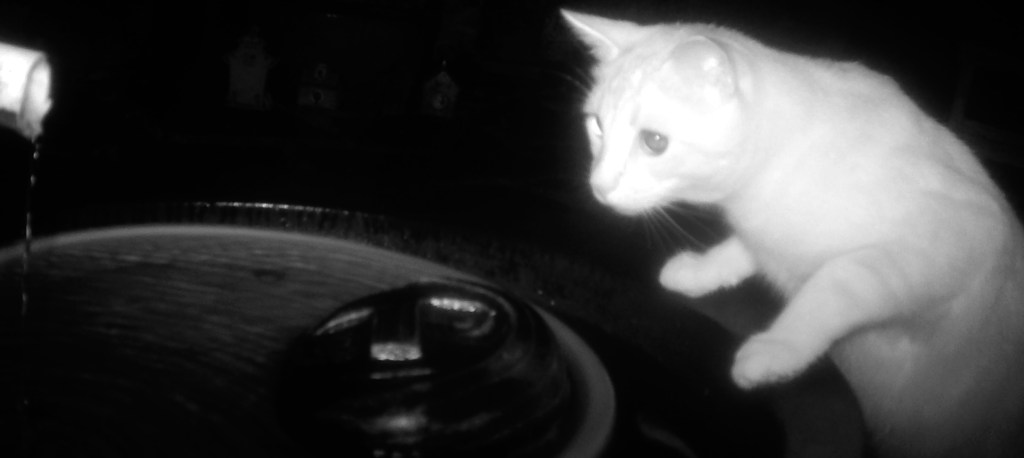 It is 4 AM and Not Our Cat is on the prowl in the Foggy Bottoms Resort and Spa. His stomach is growling so loudly that it awakens the Face of Everyman.