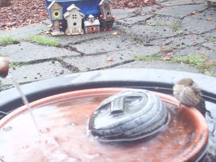 Little Somnoroase was at that awkward stage; somewhere between a fledgling and a juvenile. He had spent the day at the Foggy Bottoms Resort and Spa eating from feeders brimming with his favorite seeds. Sleep came easily to this youngster with a full belly. Twice he was observed asleep in a feeder. As seen above, the Face of Everyman, has schooched over in the event “S” topples into the water.