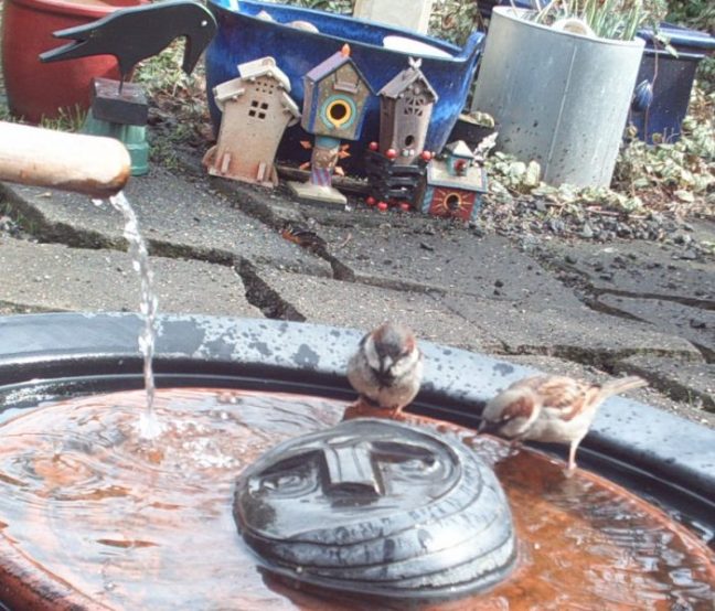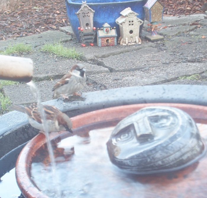 Mullard was enjoying the warm waters of the Foggy Bottoms Resort and Spa. He shared the bright morning sunlight with the Face of Everyman but such pleasures were not to last. Cheeky, the squirrel, wanted to play tag. For some inexplicable and ungodly reason Mullard was it. For now “M” sought refuge on a nearby chimney top.