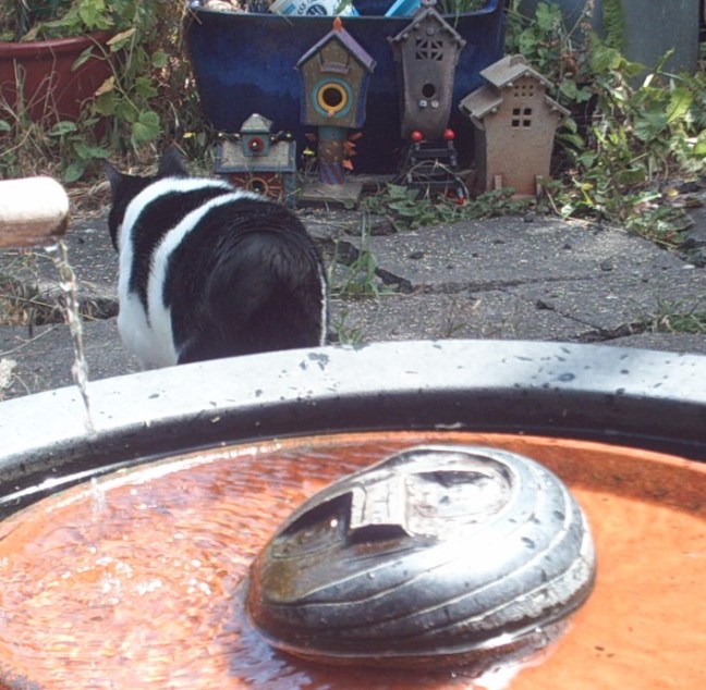 Security forces cordoned off the Foggy Bottoms Resort and Spa to prevent unauthorized photos of Tula’ the cat, from being used to confirm or deny the ugly rumor that her visit to a private clinic last week was for the purpose of having her tail straightened. In the end it was all for naught. A small boy, a guest perhaps, slipped through the net and took the above photo on a Brownie Box camera purchased on eBay. the Face of Everyman, caught unawares, wished that he had had time to pose. After all, his face was truly his fortune.