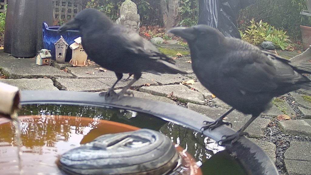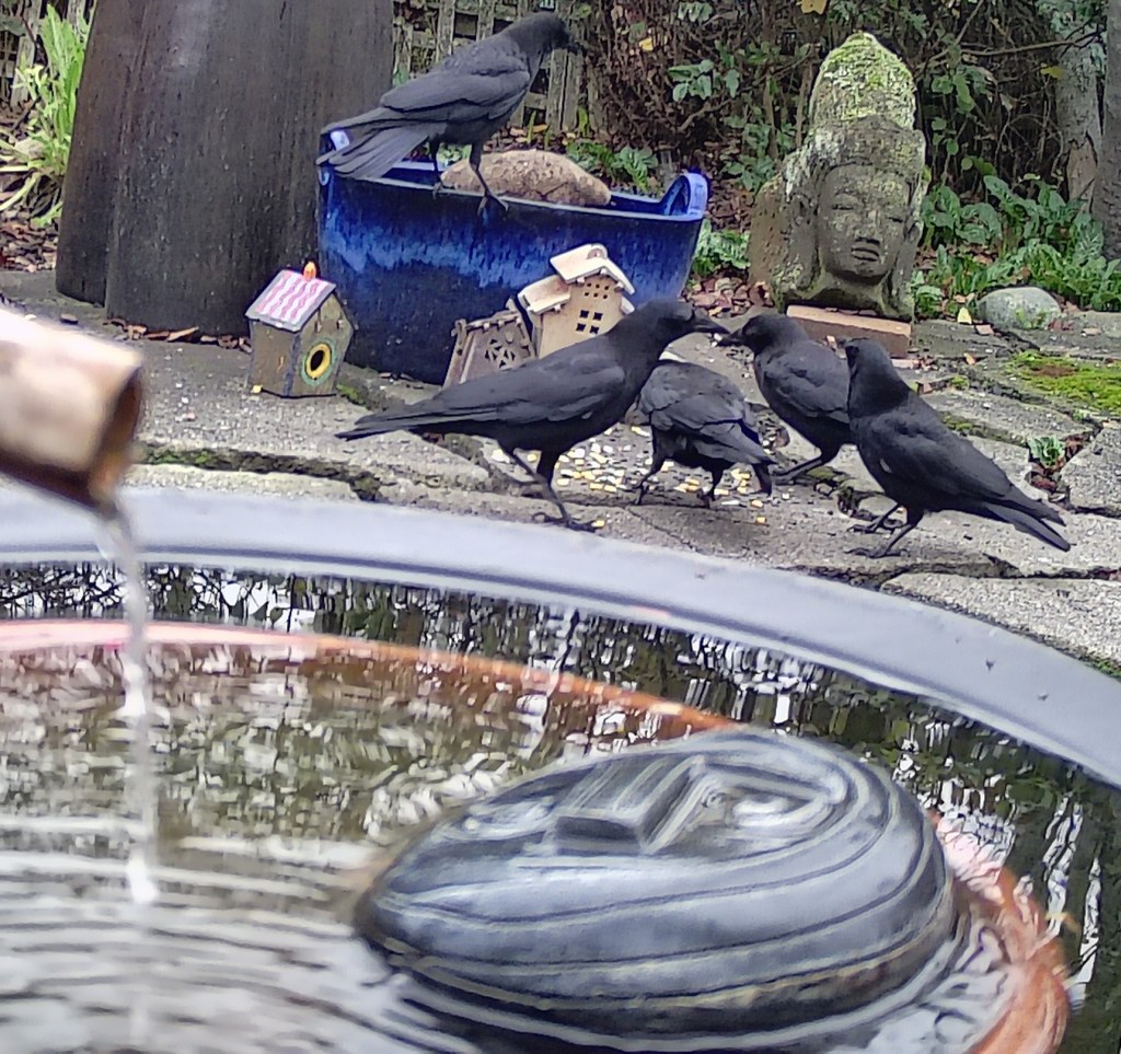 The Crow Family always liked having their picture taken. Seen above pausing between mouthfuls of seed provided by the Foggy Bottoms Resort and Spa. the Face of Everyman appreciated good tenants.