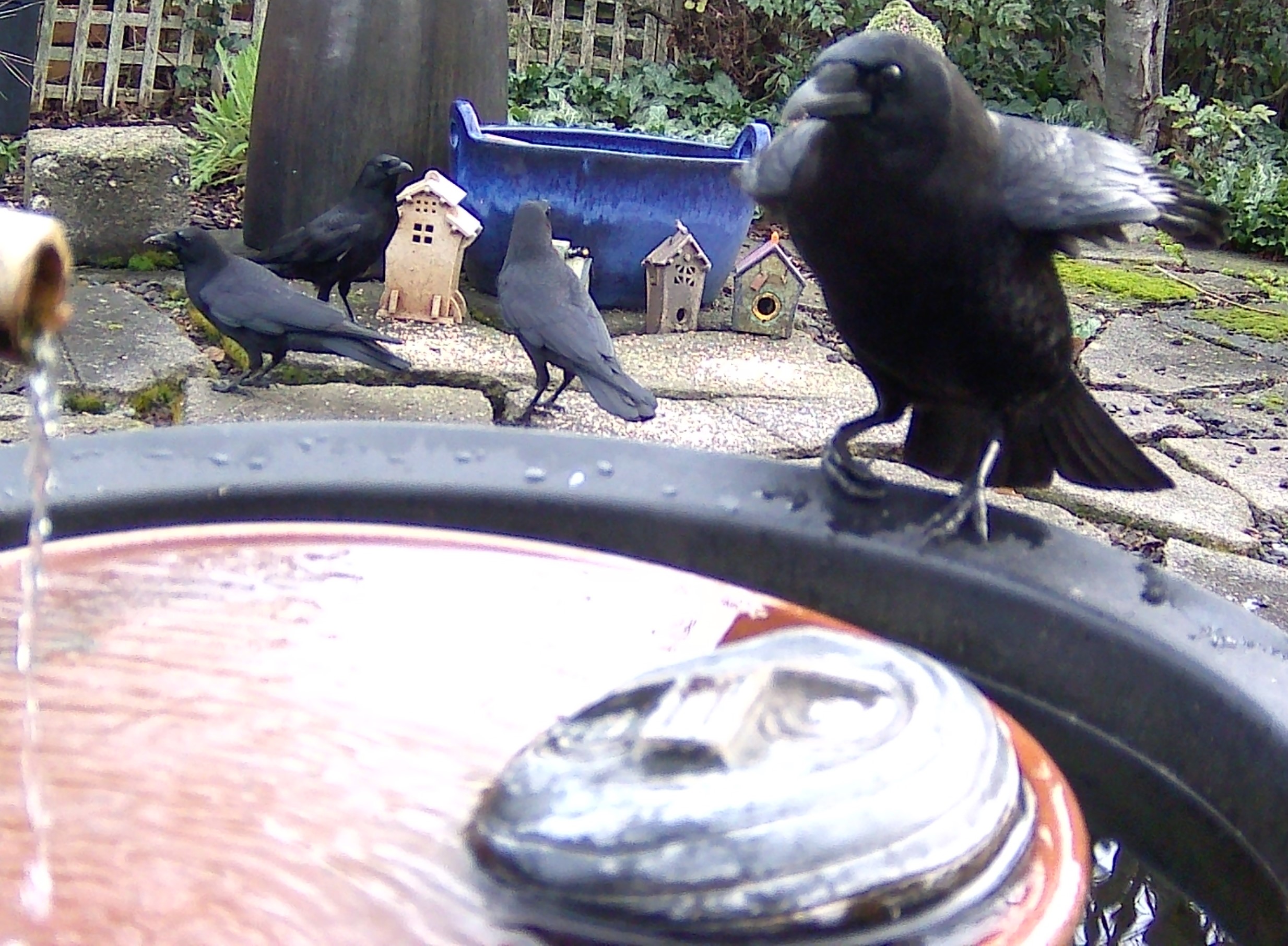 Freezing rain did not deter these hungry carnivores at the Froggy Bottoms Resort and Spa. A falling barometer and thermometer made theface of Everyman glad that there was a pond heater keeping his toes cozy.